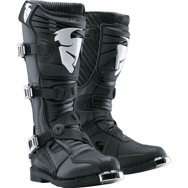 У Thor репутация марки, которая делает первоклассную обувь для мотокроссов, шоссейных гонок и эндуро. Серия Rachet - не исключение: здесь учтены все возможные нагрузки и уязвимости, продумана защита от грязи, влаги, жары и холода. Поэтому в таких ботинках будет особенно комфортно, если вы часто ездите в морозы, по горам, лужам и бездорожью. У ботинок особый материал, который сочетает прочность кожи и легкость пластика. За счет этого, а также - прокладок и накладок - согнуть обувь в уязвимых местах практически невозможно. Это значит, что нога надежно защищена от переломов и вывихов в процессе езды. По ощущениям они чуть жестче, чем многие другие мотоботы, потому что рассчитаны на экстремальную езду. При этом ноги не устают - благодаря анатомической стельке с поддержкой и мягким вкладкам.