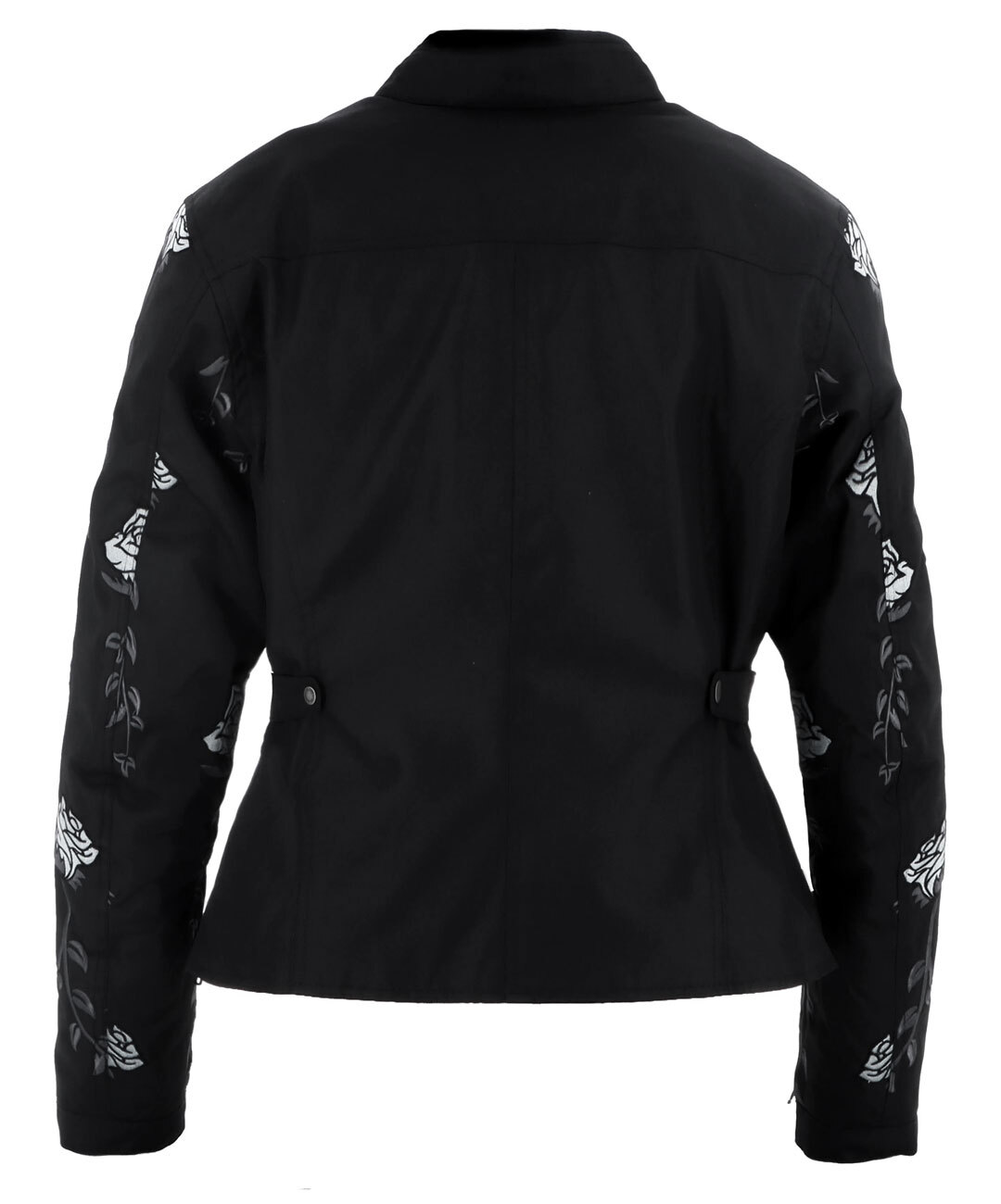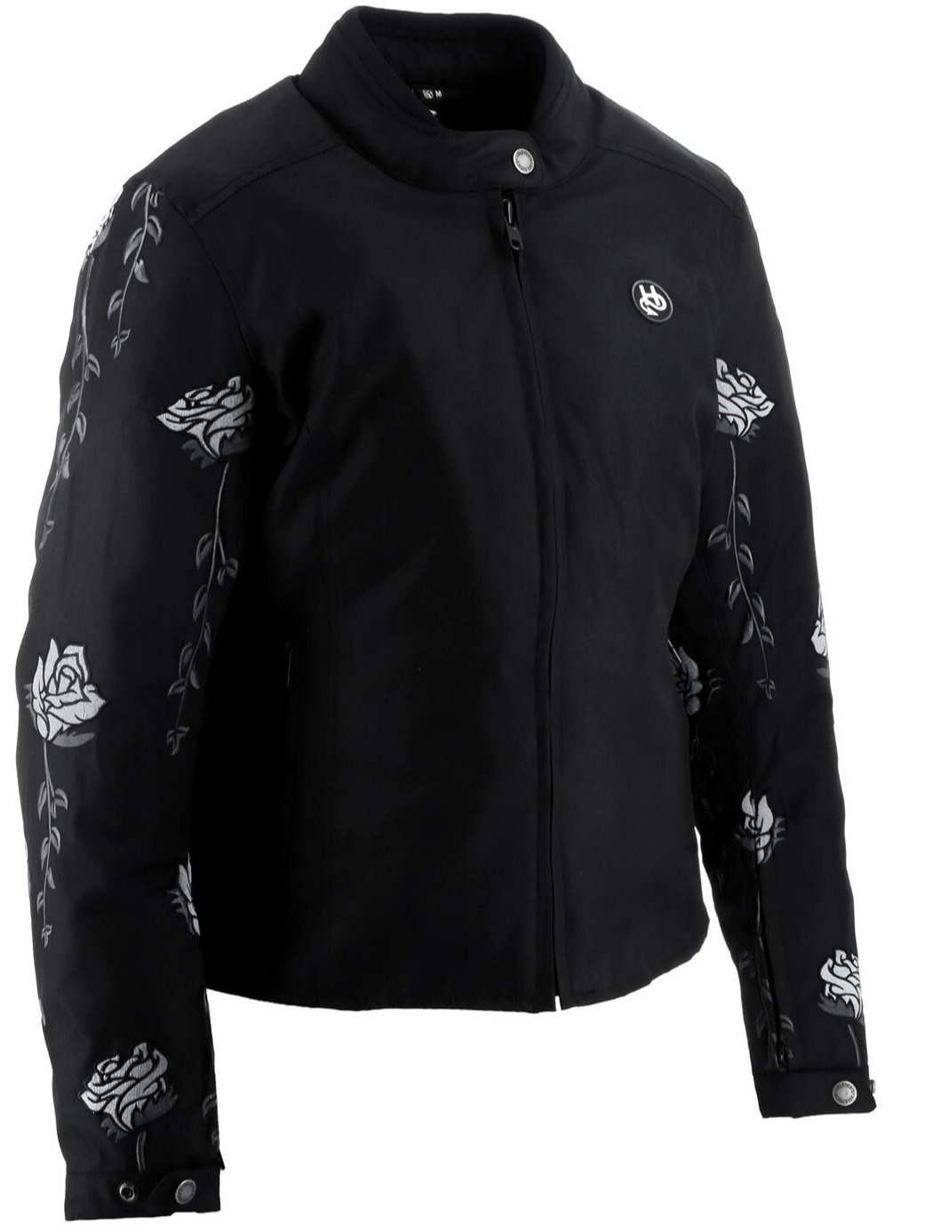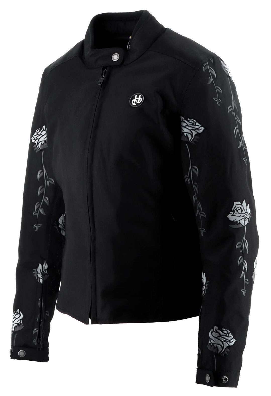 Женская куртка Helstons Rosa из чёрной технической ткани, украшенная вышитыми розами на рукавах, специально разработана для байкеров, ценящих элегантность и комфорт.