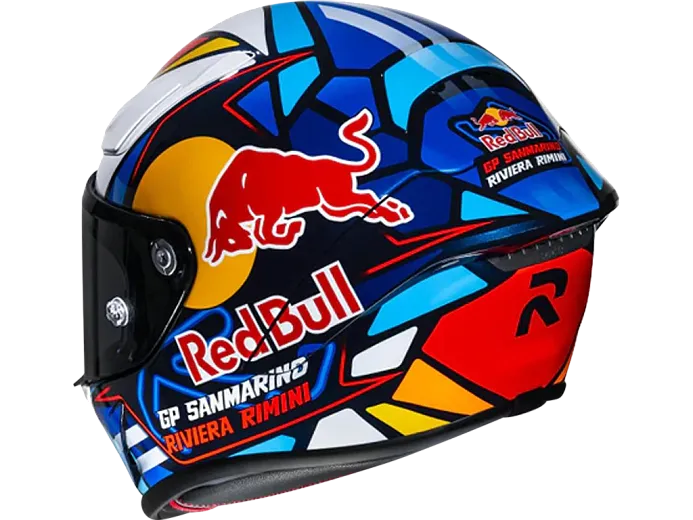 Шлем обладает премиальной конструкцией из прочного поликарбоната и передовым аэродинамическим профилем для стабильности на высокой скорости. Его ключевая особенность — максимальный уровень безопасности, подтвержденный строгим стандартом ECE 22.06 и омологацией FIM для участия в профессиональных гонках. В комплекте — все для комфорта: прозрачный визор, аэродинамический спойлер, система Pinlock против запотевания и пленки Tear-Off. Эта популярная модель для мотоциклистов уже получила положительные отзывы за свой стильный дизайн в цветах Red Bull и универсальность — шлем подходит как мужчинам, так и женщинам.