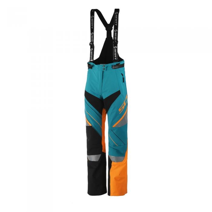 Женский лёгкий полукомбинезон Scott Shell Pro выполнен в ярком дизайне, с сочетанием синего, голубого и розового цвета. Брюки предназначены для поездок на снегоходе в холодную погоду. Главные характеристики изделия — это воздухонепроницаемость, вентиляция и удобство в движении. Внешняя ткань изготовлена из водоотталкивающего, ветронепроницаемого материала, cостоящего из 52% полиамида, 32% полиэстера, 16% эластана, а внутренняя подкладка — из 100% полиэстера и представляет собой мягкий сетчатый материал. Брюки оснащены двухслойной мембраной DRYOsphere 2L.