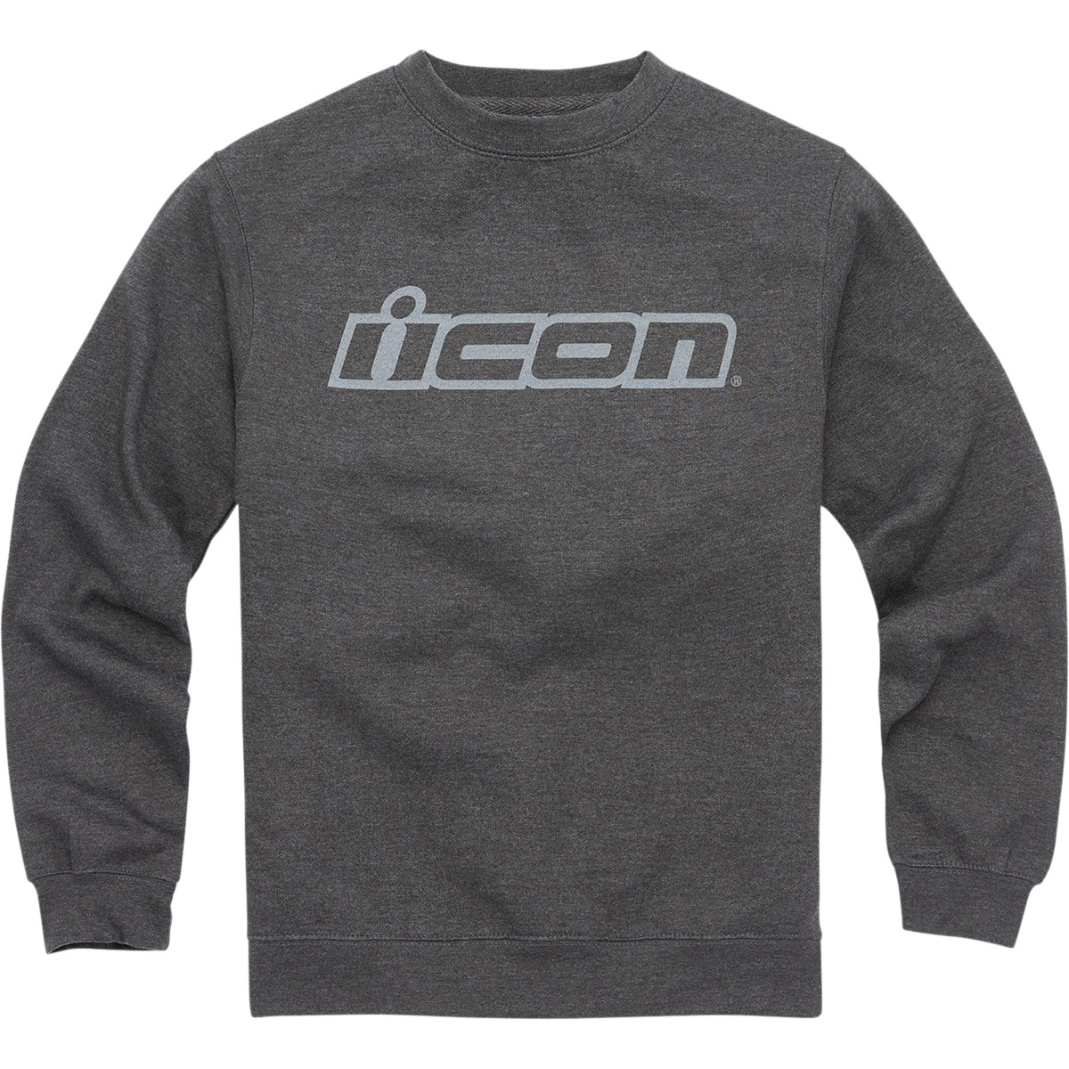 Мужская мототолстовка Icon Slant Crewneck – удобный серый свитшот в стиле кэжуал с круглым вырезом горловины. Новая модель полуприлегающего силуэта из коллекции спортивной экипировки легендарного бренда Icon Motorsports (США). Сшита из плотного трикотажа поликоттона – 80% хлопка, 20% полиэстера. Прочная, износостойкая вещь, которая не мнется, отлично стирается и уверенно держит форму в процессе носки. Отсутствие капюшона позволяет надевать ее под мотокуртку или мотожилет.
