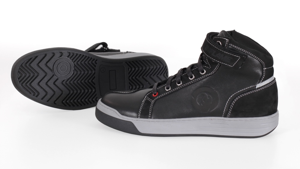 Мотоботы Inflame Sneakers представляют собой стильные высокие кеды в урбанистическом стиле с интегрированными защитными элементами. Качественная обувь из натуральной гладкой кожи премиум класса является результатом ручной работы мастеров. Современная модель характеризуется превосходными водоотталкивающими, воздухопроницаемыми и износоустойчивыми свойствами. Встроенные жесткие протекторы на мыске и задней части призваны оберегать пальцы и пятки пользователя от трения и ударов при падении. Область голеностопного сустава покрыта дополнительной защитной накладкой, которая сводит к минимуму вероятность получения ушибов и травм при непредвиденной ситуации. Мелкоячеистая «дышащая» подкладка из 100% полиэстера не допускает потение ног и появление неприятного запаха даже при долгом ношении мотоботинок в жаркую погоду.