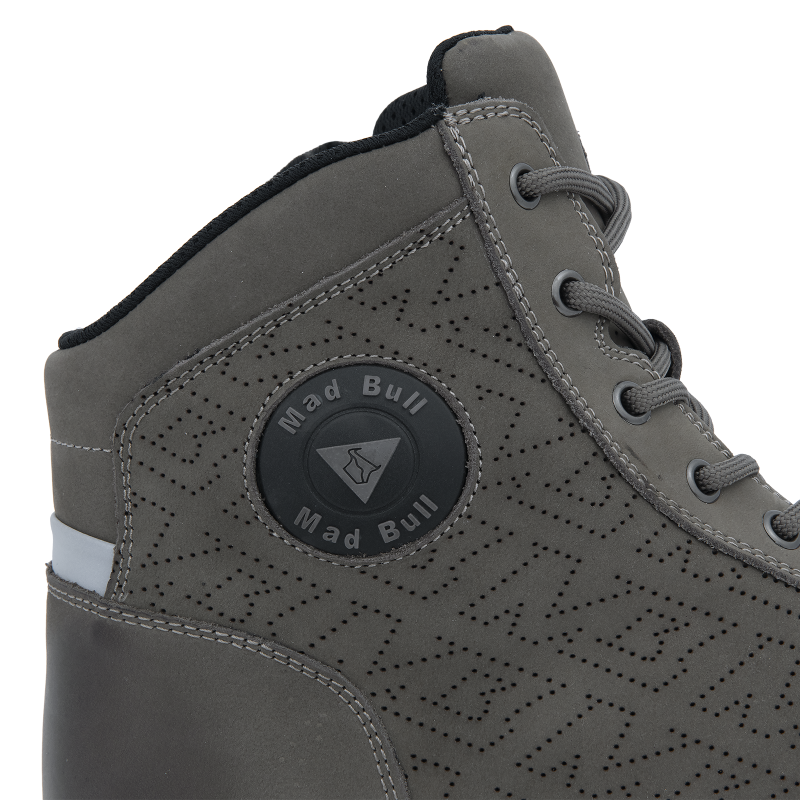 Летние короткие мотоциклетные ботинки MadBull Sneakers AERO серого цвета спроектированы как универсальная обувь для мотогонок и повседневного городского ношения, поэтому сочетают в себе полный набор функций защитной экипировки, стильный дизайн, актуальный для современной моды, и удобство в носке. Модель пошита из натуральной кожи и имеет перфорированные «дышащие» участки на язычке и боковых панелях, которые в сочетании с мягкой внутренней сетчатой подкладкой из гипоаллергенного материала обеспечивают комфорт ног в жаркое время года. Элементы усиления каркаса, такие как вшитые защитные ударостойкие щитки в носочной, пяточной и лодыжечной области, а также двойной слой кожи над большим пальцем, защитят ноги мотогонщика в случае аварии.