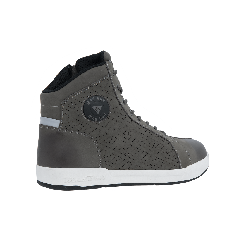 Серые мотокеды MadBull Sneakers AERO также имеют специальную подошву усиленной гибкости и сопротивления скручиванию, нижняя часть которой устойчива к химическому воздействию ГСМ. Боковой замок-молния с внутренней стороны избавит владельца от необходимости постоянной шнуровки, а специальный верхний ремешок на липучке, закрывающий бегунок молнии, защитит поверхности мотоцикла от случайных царапин.