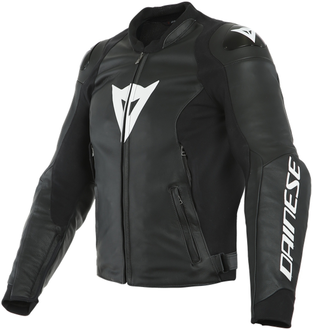 Мужская кожаная мотокуртка Dainese Sport Pro спортивного эргономичного кроя с вставками из армированной кардуры. Сшита из очень прочной износостойкой воловьей кожи, оснащена гигроскопичной перфорированной подкладкой Nanofeel, обработанной ионами серебра. Слегка приталена и удлинена по спинке для комфортной посадки на мотоцикле. Регулируется в объеме на бедрах, удобно фиксируется к мотоштанам при помощи специальных креплений. Рукава с эластичными манжетами. Спереди 4 кармана на молниях. По бокам и на спине – клапаны на молниях для установки защитных протекторов.