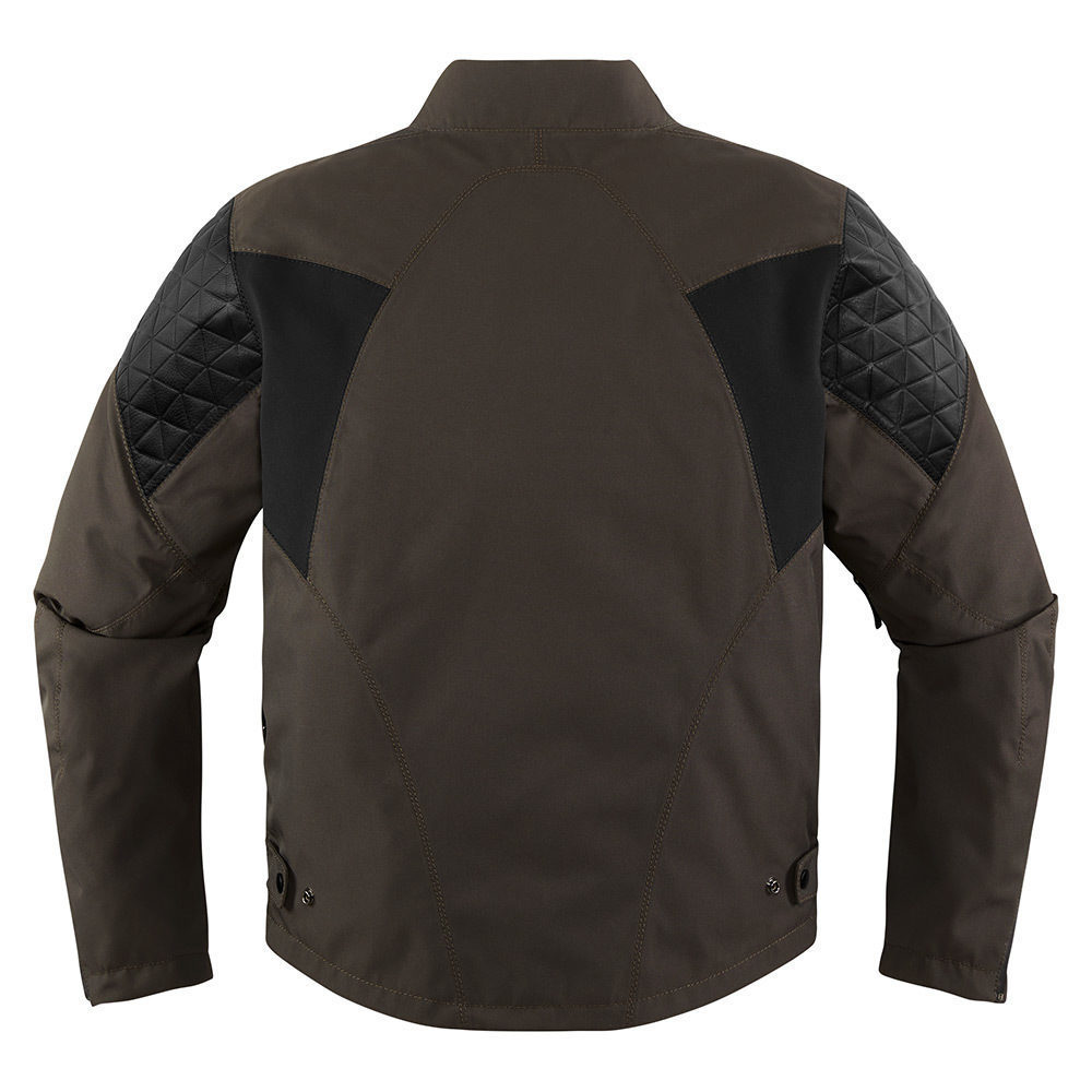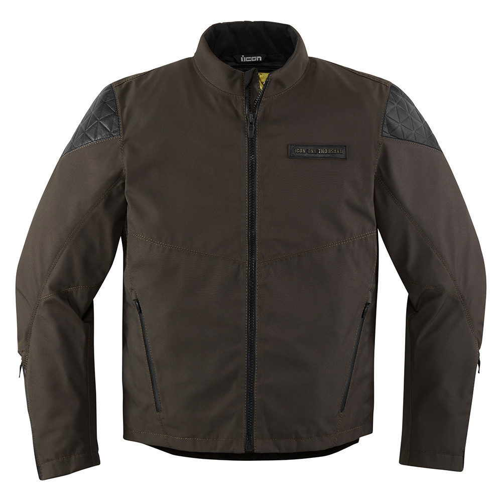 Мотокуртка Icon 1000 Squalborn является частью экипировки, но может применяться для повседневного ношения. Модель имеет эргономичный крой и тянущиеся вставки в зоне лопаток, что предотвращает скованность движений. Основным материалом, использованным при изготовлении, является высокопрочный баллистический нейлон темно-коричневого цвета.