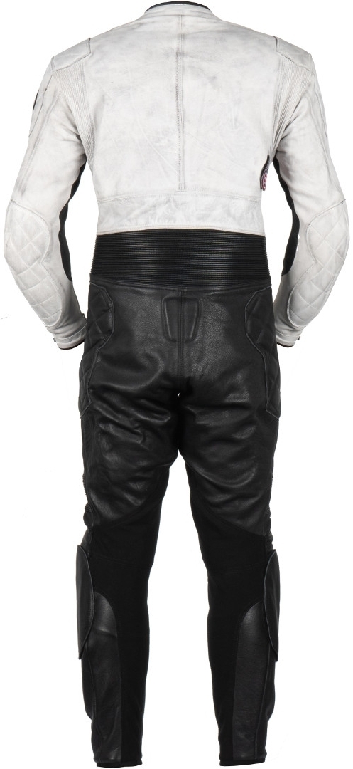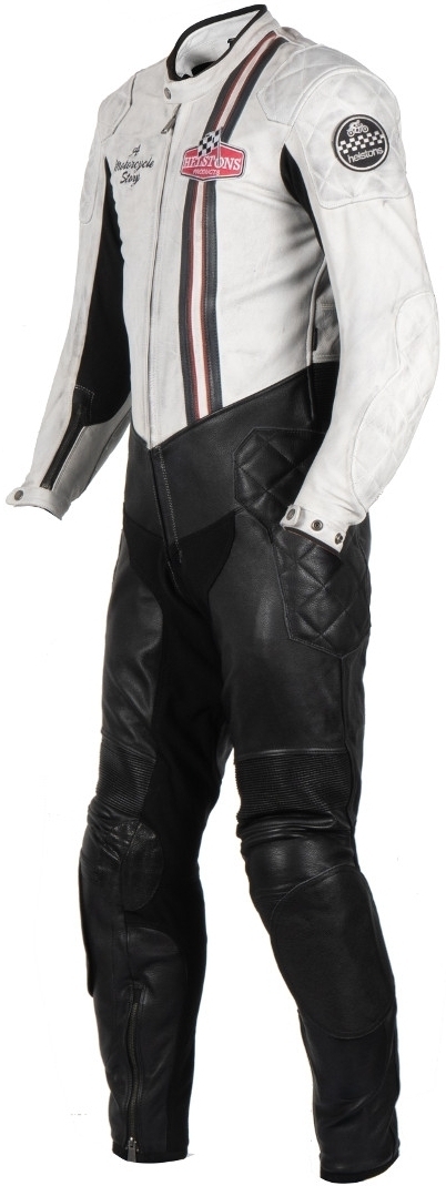 Мотокомбинезон Helstons Stirling Suit Cuir Plain застегивается на молнию, подгоняется при помощи ремешков-утяжек, имеет стеганные защитные кожаные накладки в зонах, подверженных повышенным нагрузкам при падении с мотоцикла. Модель отвечает требованиям евростандарта безопасности EC Level-1 и комплектуется защитными протекторами для спины, плеч, локтей и коленей.