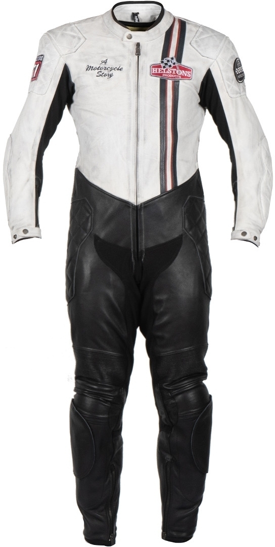 Мужской кожаный мотокомбинезон Helstons Stirling Suit Cuir Plain, разработанный специально для мотоспорта — отличная альтернатива мотобрюкам и куртке. Черно-белый мотокомбинезон сшит из премиальной воловьей кожи с эластичными вставками для свободы движений. Съемная подкладка из ткани, усиленной арамидными волокнами, гне теряет защитных свойств после многократных стирок. Мотокомбинезон украшен “спортивными полосами” из красной и черной кожи, а также шевронами с символикой и логотипом бренда. В этой же цветовой гамме можно купить мотошлем Helstons.