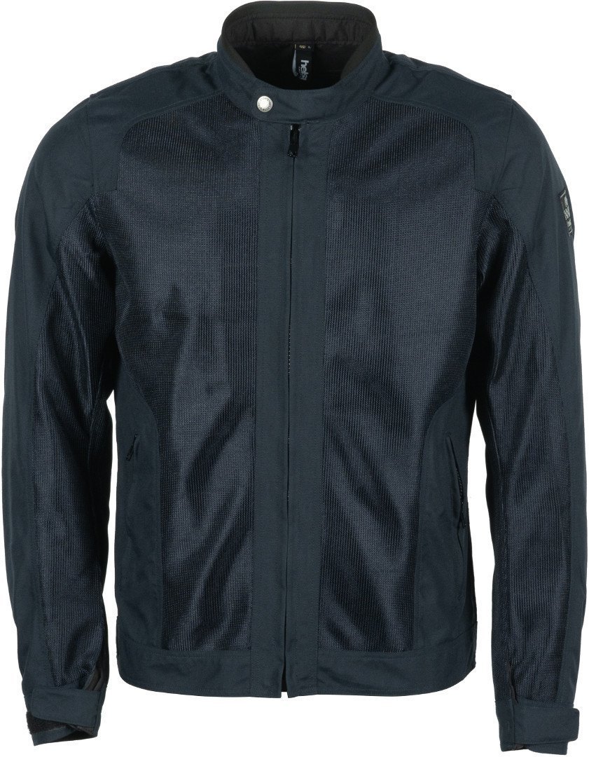 Мужская текстильная летняя мотокуртка Helstons Stoner Mesh Tissu темно-синего цвета. Экстравагантная и вместе с тем простая модель с воротником-стойкой. Сшита из прочной износостойкой ткани с сетчатыми вставками на рукавах, полочках и спинке, имеет тонкую сетчатую подкладку с внутренними карманами. Обеспечивает комфортный воздухообмен в жаркую погоду. Все карманы на молнии – 2 внешних и 2 внутренних на подкладке. В поясе куртка регулируется ремешками с кнопкой. Для утяжки манжет используются застежки-велкро.
