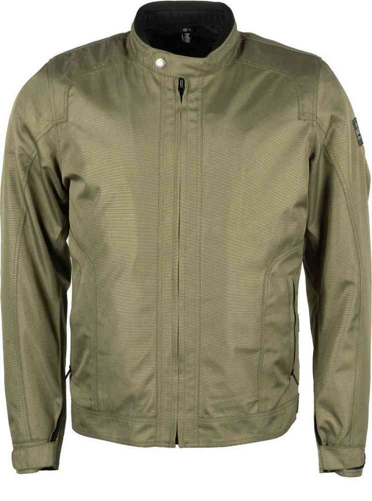Мужская текстильная мотокуртка Helstons Stoner Tissu Technique цвета хаки со съемным термоалюминиевым жилетом для прохладного времени года и фирменной сетчатой подкладкой для хорошей вентиляции в жару. Материал верха — высокотехнологичная прочная полусинтетика с водогрязеотталкивающей пропиткой и мембранной защитой от дождя. Мотокуртка застегивается на молнию, воротник стойка — на кнопку, манжеты и пояс подгоняются ремешками-утяжками. Наружные и внутренние карманы закрываются на молнию.