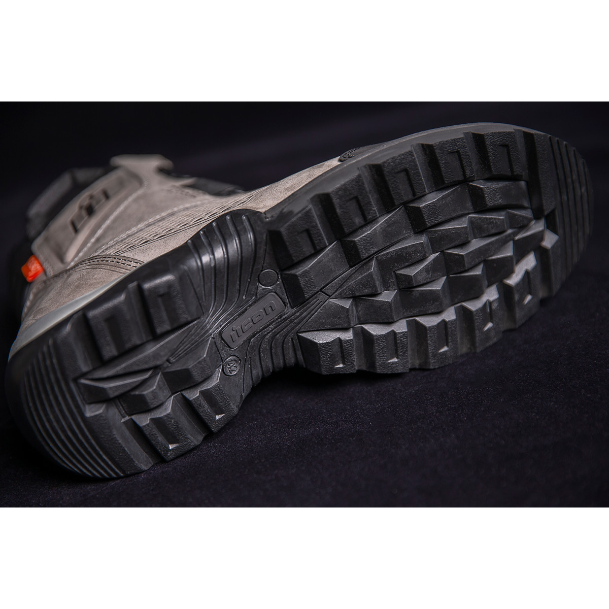 Серые мужские мотоботы Stormhawk от Icon – кожаные водонепроницаемые всесезонные ботинки из новой коллекции 2021 года. Производитель добился полной непромокаемости модели в сочетании с дышащими свойствами, за что отвечают вставки из высокотехнологичного мембранного материала eVent. Верх ботинок выполнен из воловьей кожи премиального качества, носок закрыт прочной резиновой накладкой. В области щиколотки с обеих сторон установлены защитные вкладки из 3D0. На пятке – светоотражающий элемент с логотипом Icon.