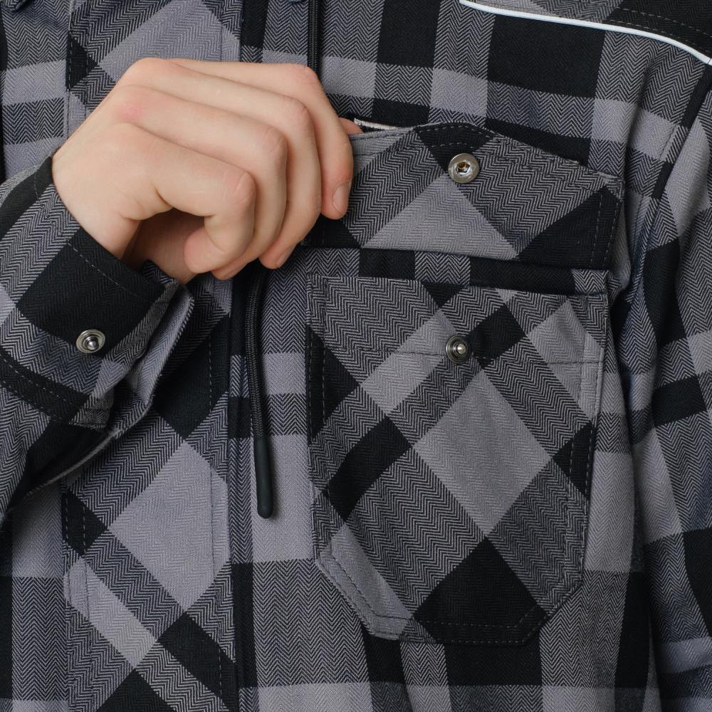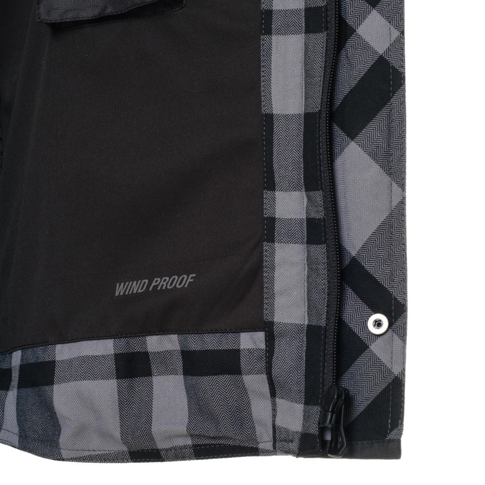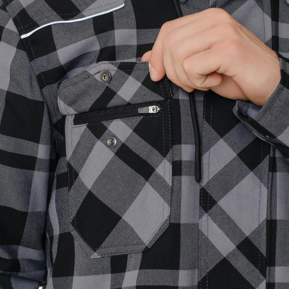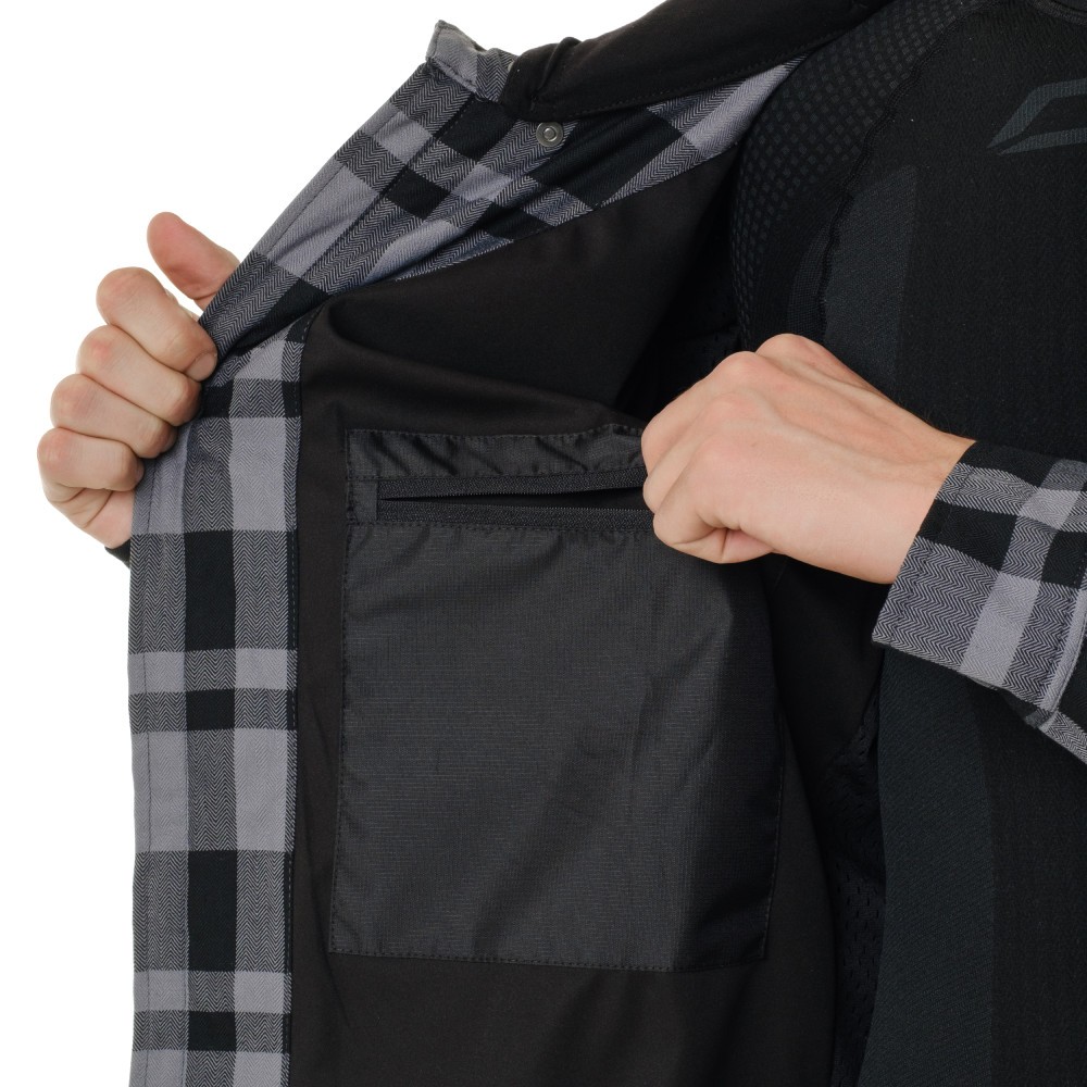 Основа изделия — износостойкая поливискоза плотностью 250 г/м², усиленная арамидной тканью TERAMID в зонах плеч и локтей. Такая конструкция превращает модель в надежную защитную моторубашку, устойчивую к разрывам и трению. В комплекте уже идут протекторы ImpacTec, положение которых можно регулировать, а специальный карман на спине позволяет установить дополнительную защиту. Благодаря мембране и ветрозащитной планке на магнитах вы будете чувствовать себя комфортно даже в ветреную погоду. Функционал дополняют съемный капюшон, множество карманов и система крепления к штанам.