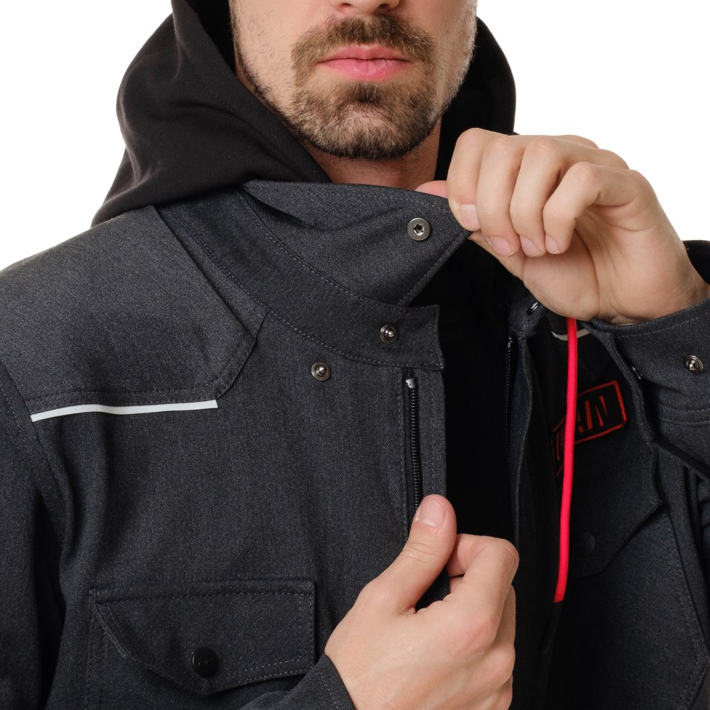 В отличие от обычной одежды, эта защитная моторубашка представляет собой высокотехнологичное изделие. Основа из плотной поливискозы усилена арамидной тканью TERAMID (аналог кевлара) в зонах повышенного риска — на плечах, локтях и спине. Это делает модель настоящей моторубашкой с арамидом, устойчивой к истиранию и разрывам. В комплекте уже идут сертифицированные протекторы ImpacTec, положение которых регулируется для идеальной посадки. Передняя часть оснащена мембраной и ветрозащитной планкой на магнитах, что надежно бережет от продувания.