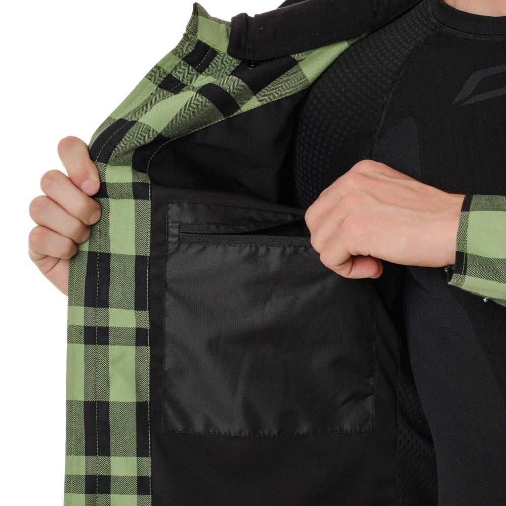Эта защитная моторубашка оснащена премиальными протекторами ImpacTec TP-02 Velcro на плечах и локтях, с возможностью регулировки положения в четырех направлениях. Усиленные зоны на спине, локтях и плечах выполнены из арамидной ткани TERAMID — материала, используемого в профессиональной мотоиндустрии. Предусмотрен карман для установки защиты спины. Многофункциональный дизайн включает теплый съемный капюшон, который можно пристегнуть к спине, центральную молнию с ветрозащитной планкой на магнитах, манжеты на молнии и кнопках, а также удобные внутренние и внешние карманы. Светоотражающие элементы повышают вашу заметность на дороге.