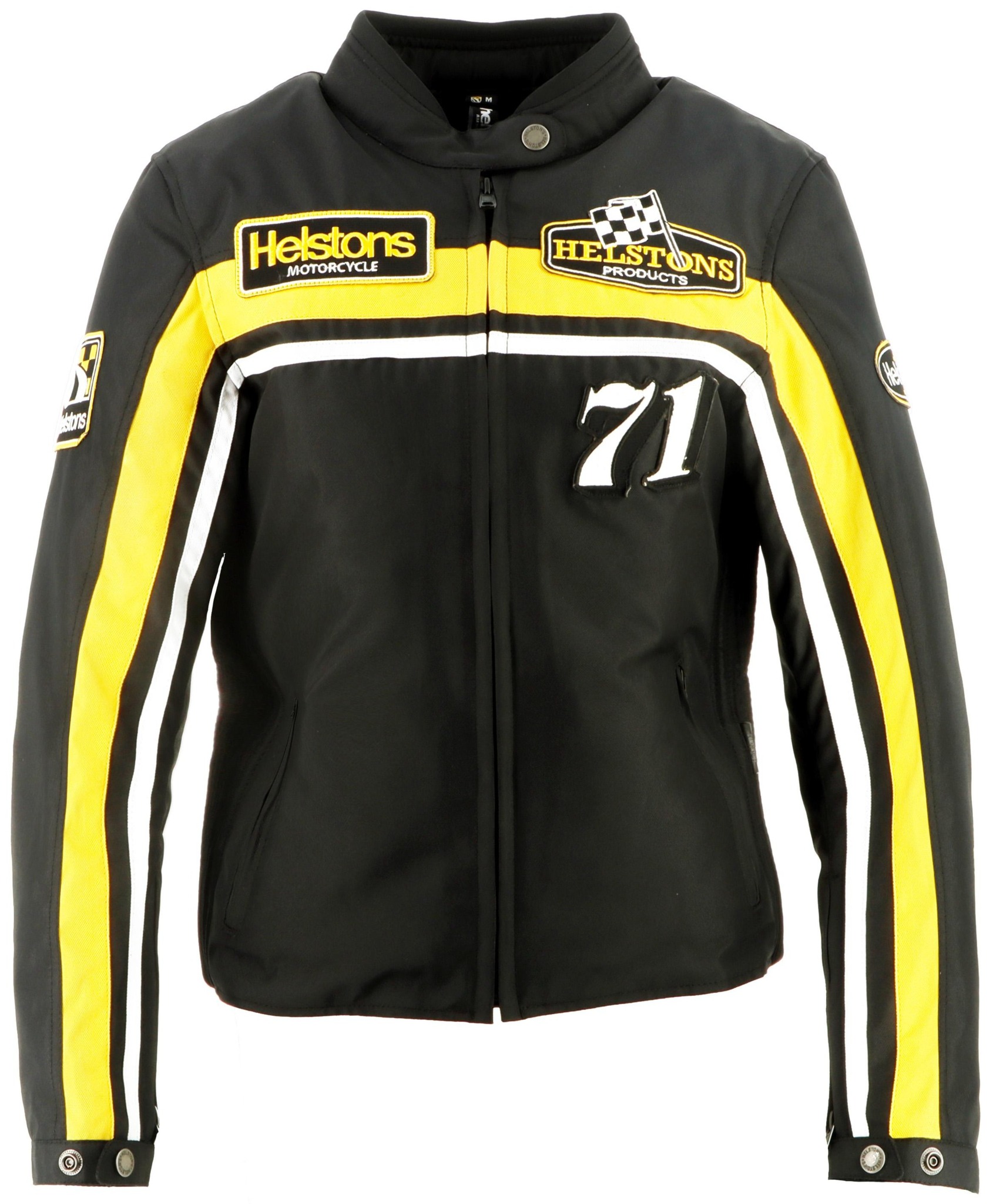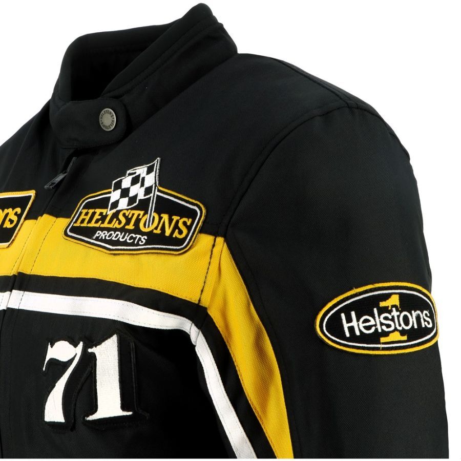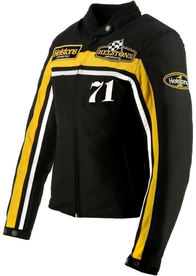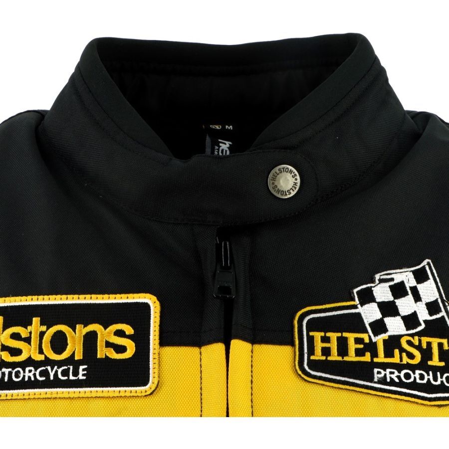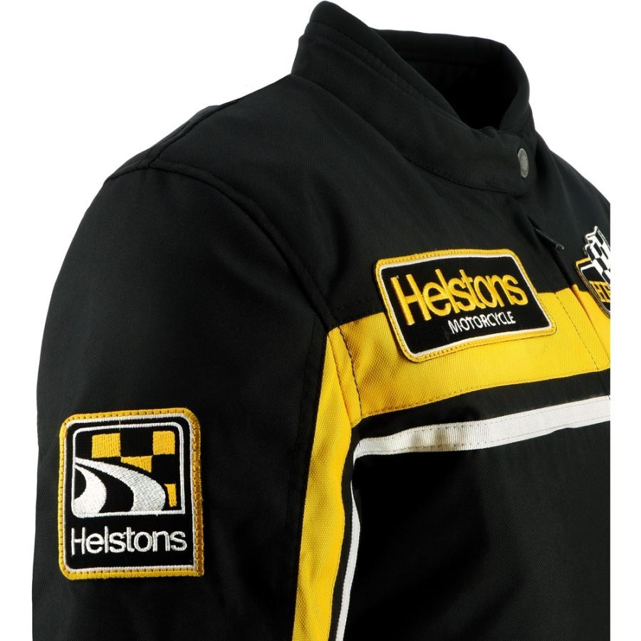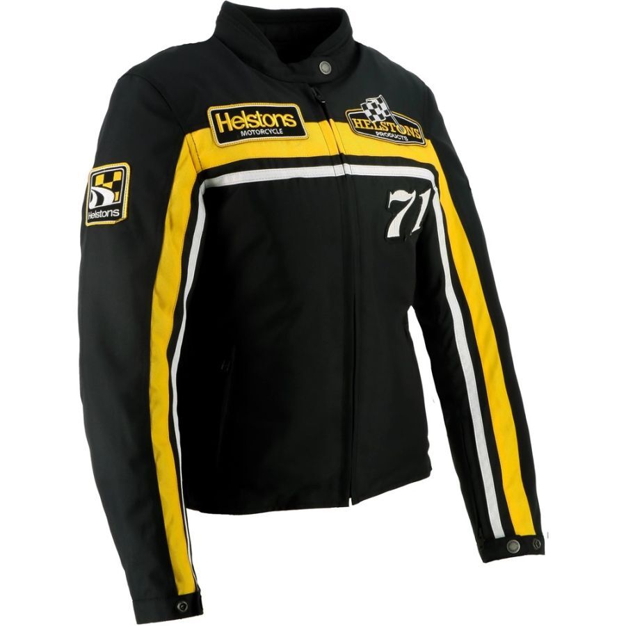 Женская куртка Helstons Sturgis из технической ткани в чёрно-бело-жёлтых тонах воплощает культовый стиль бренда и погружает вас в атмосферу гонок и винтажного стиля.