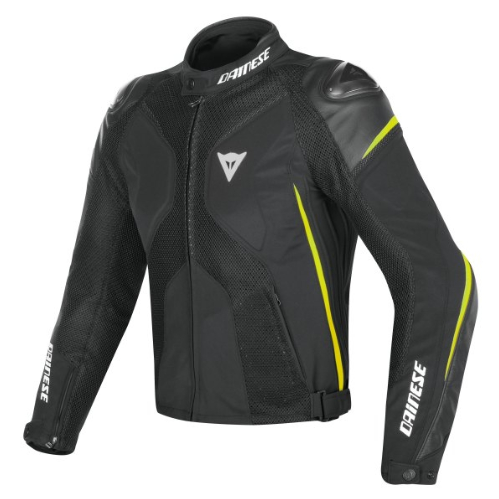 Dainese Super Rider D-Dry изготовлена из фирменной ткани Mugello. Эта ткань обеспечивает необходимую износостойкость и посадку, свойственную кожанным мотокурткам. На плечах находится термоформованное укрепление, обтянутое натуральной кожей и оснащенное алюминиевыми слайдерами. Кроме того, защиту обеспечивают композитные защитные элементы CE уровня 1 на плечах и локтях.