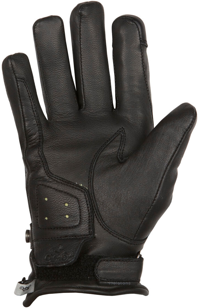 Женские кожаные утепленные мотоперчатки Helstons Tinta Hiver Cuir из черной мягкой кожи-шевро повышенной прочности. Имеют сложный анатомический крой и комфортно облегают кисть, не снижая подвижности суставов. Для защиты костяшек используется жесткая вставка из углепластика. Перчатки механически защищают руки и запястья при падении, предупреждают травмы и ожоги. Утеплены мягким армейским флисом Primaloft, по термозащитным свойствам не уступающим гусиному пуху. Поддерживают комфортное тепло и сухость изнутри.
