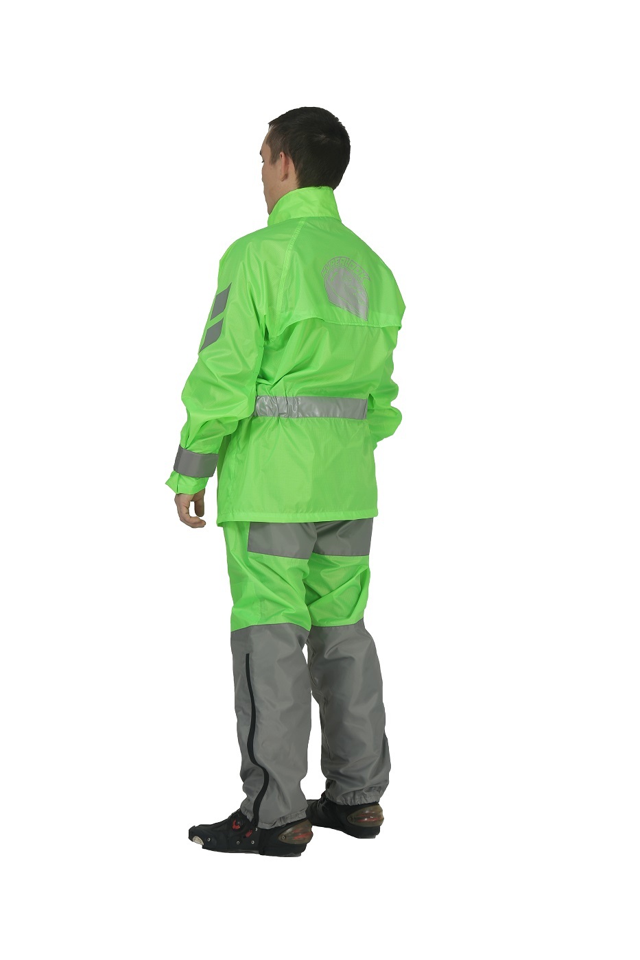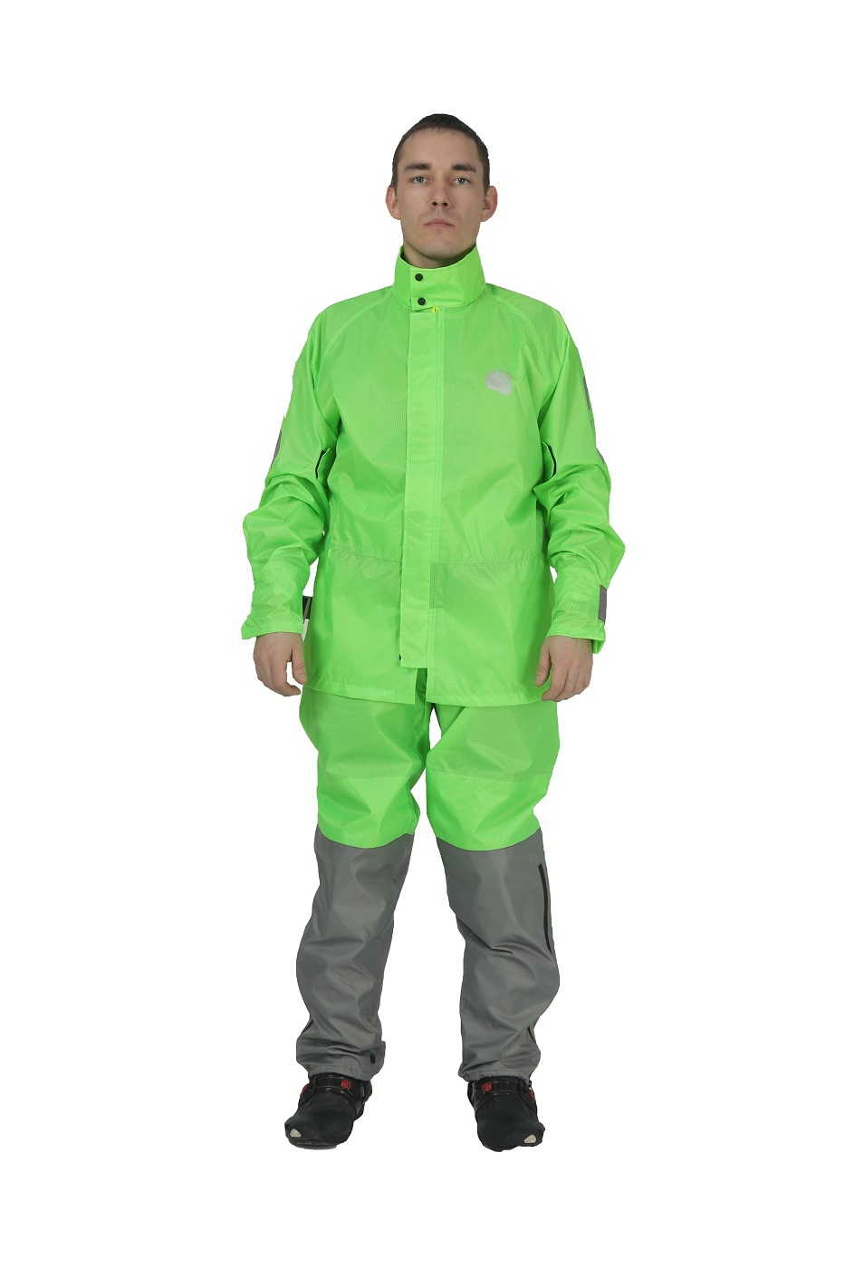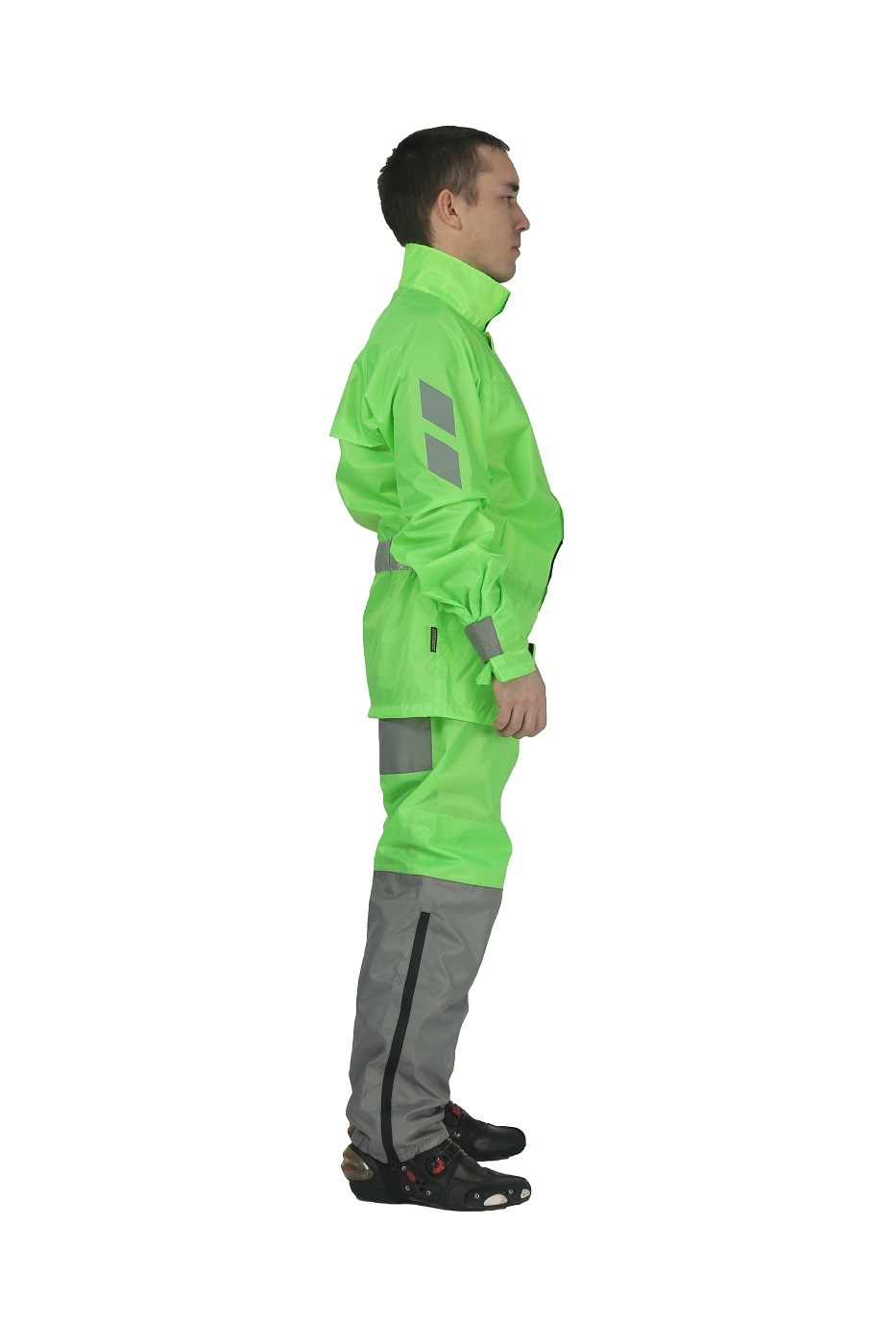 Регулировочные ремни на предплечьях и запястьях помогают подогнать мотодождевик под индивидуальные параметры райдера. Светоотражающие элементы и фирменный логотип в области спины повышают пассивную безопасность водителя в темное время суток. Верхняя часть легко прикрепляется к брюкам, поэтому задирание и сползание одежды при управлении байком исключено. Дождевик Титан дает возможность сохранить мотоэкипировку в чистом и сухом виде во время дождливой погоды. Комплект в сложенном виде имеет компактные размеры и не занимает много места в рюкзаке или кофре.