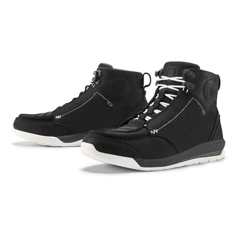 Мотоботинки Icon Truant 2 1000 отлично подходят для ношения в городских условиях. Основным материалом, использованным при изготовлении, является износоустойчивая кожа черного цвета. По бокам предусмотрены вставки с перфорацией, обеспечивающие постоянную внутреннюю вентиляцию. Область, контактирующая с переключателем скоростей, усилена кожаной накладкой.
