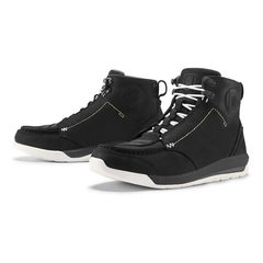 Шнуровка со скрытыми петлями обеспечивает легкое надевание, снятие и надежную фиксацию стопы. Внутри находится анатомическая стелька, гарантирующая правильное положение ноги. В области лодыжек предусмотрены защитные вставки D3O. Подошва из композитного материала имеет оптимальную жесткость и упругость, поэтому создает максимальный комфорт как при езде, так и ходьбе. Основание оснащено специальной протекцией, предотвращающей скольжение мотоботинок.