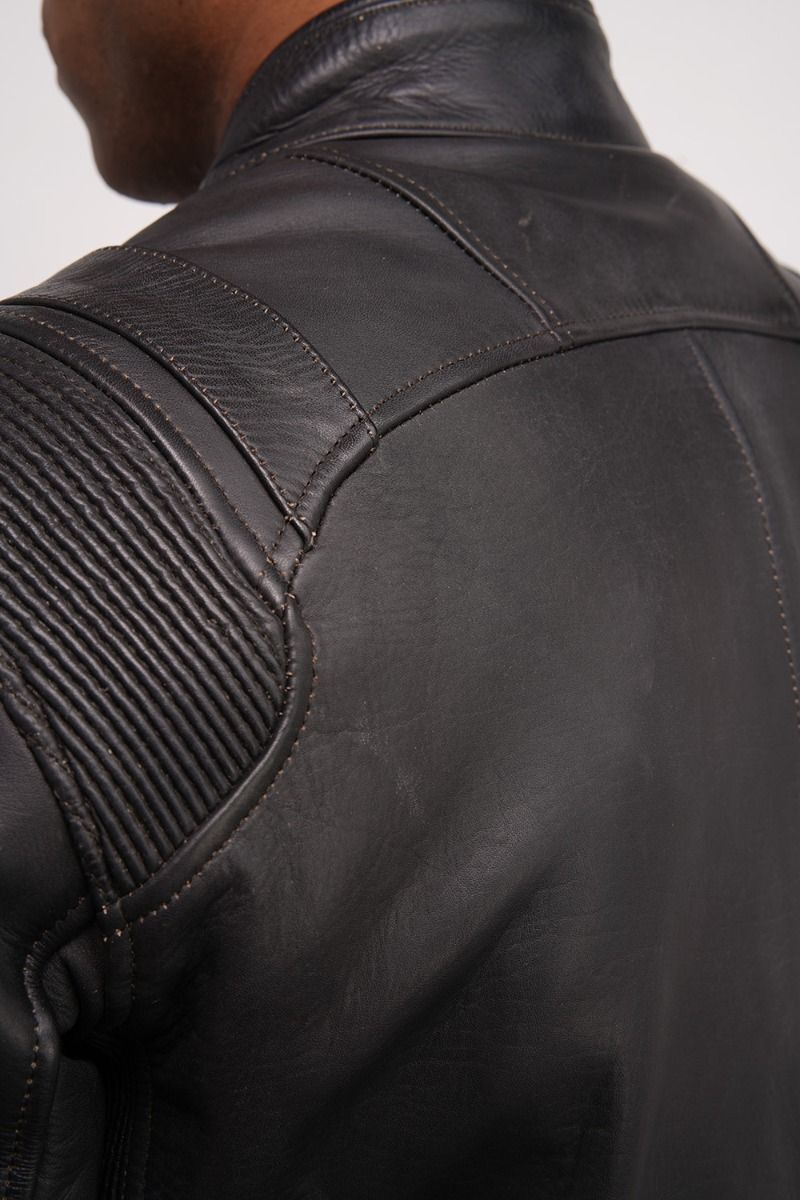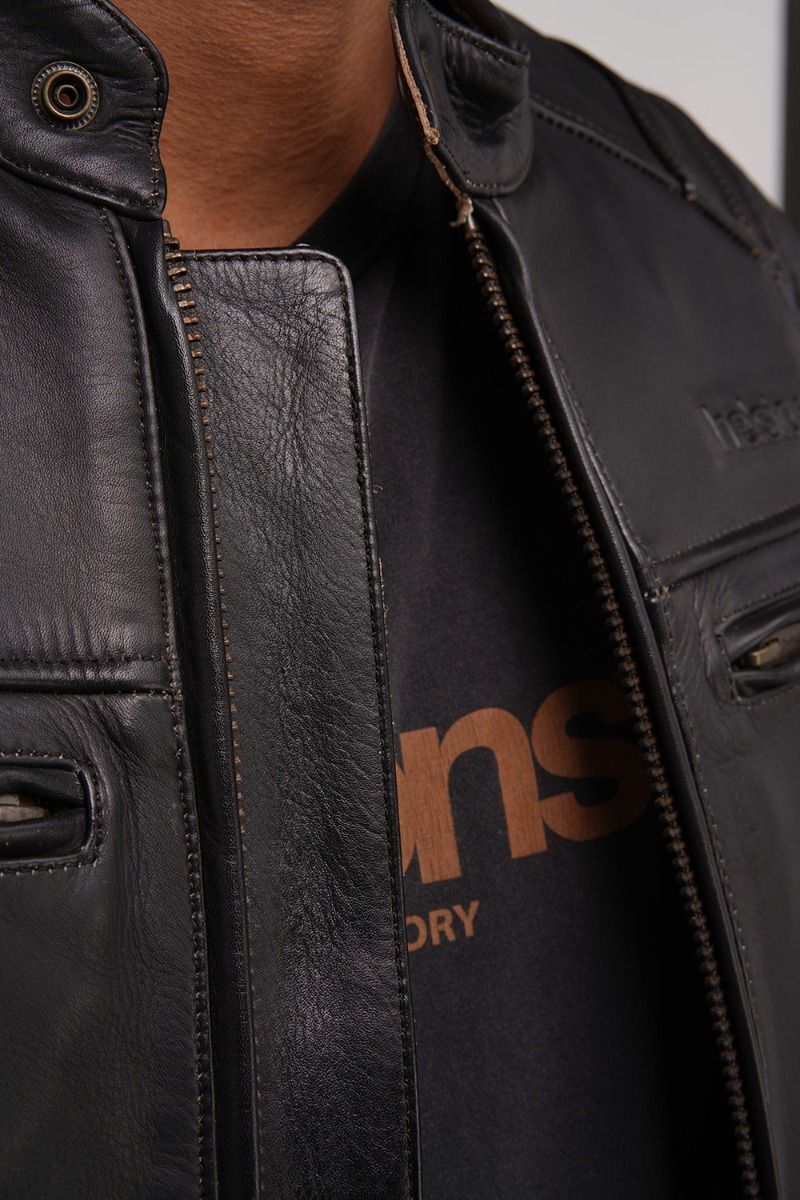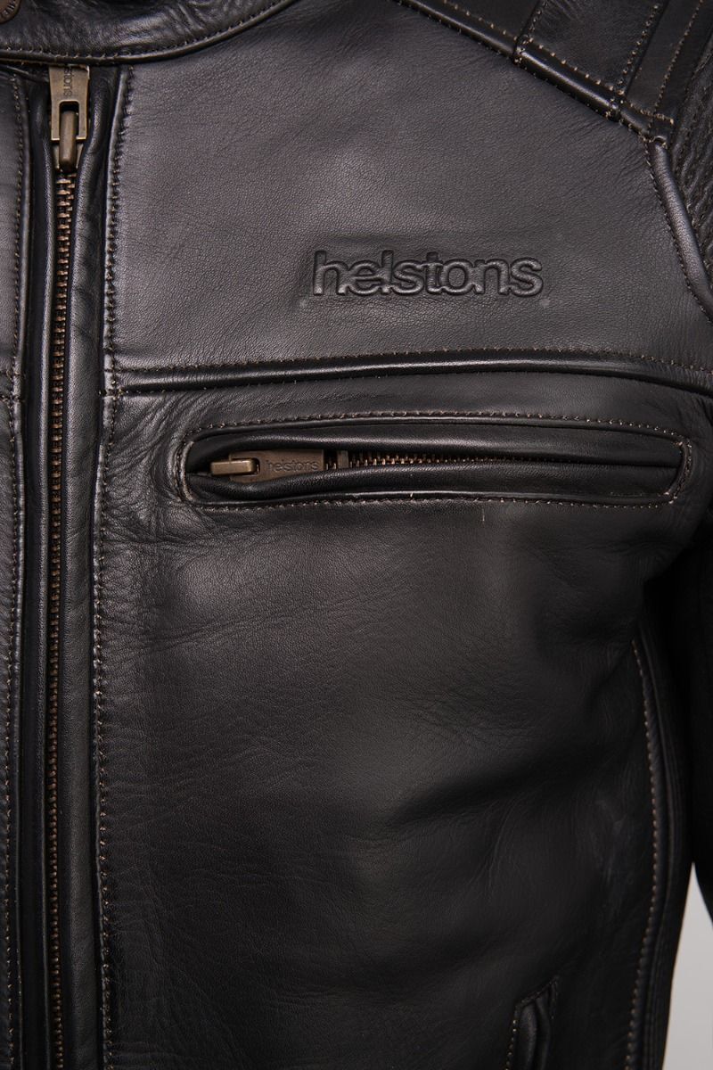 Куртка мотоциклиста TRUST Leather Plain Black от французского бренда Helston пошита из натуральной бычьей кожи черного цвета толщиной 1,1−1,2 мм. Кожа отличается гладкой поверхностью, а классический байкерский фасон куртки придется по вкусу большинству любителей мотоциклов и быстрой езды.