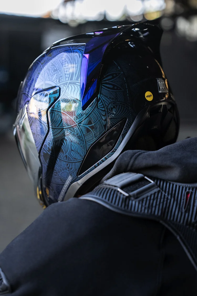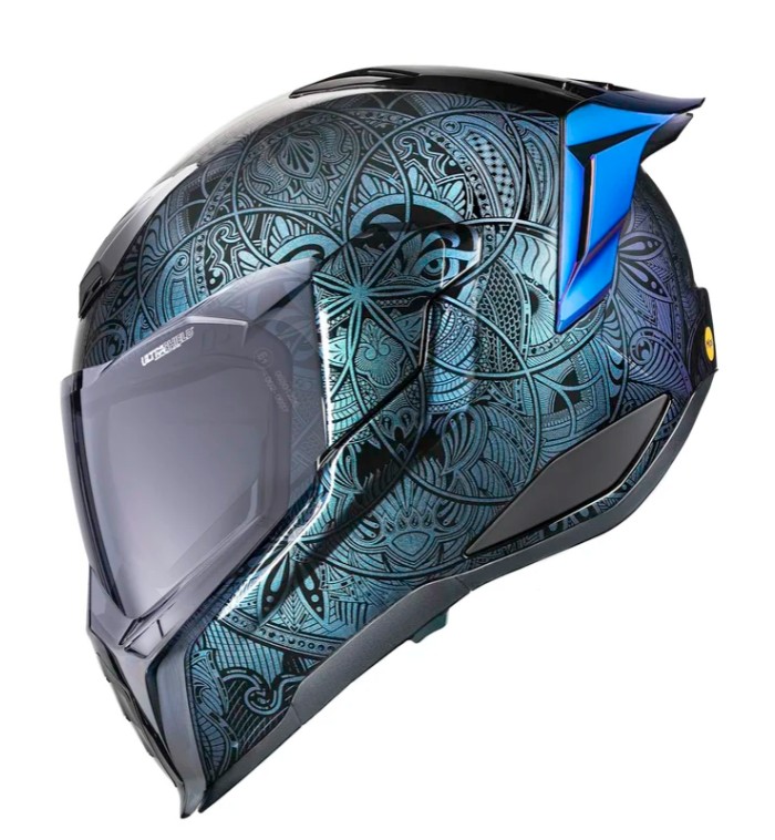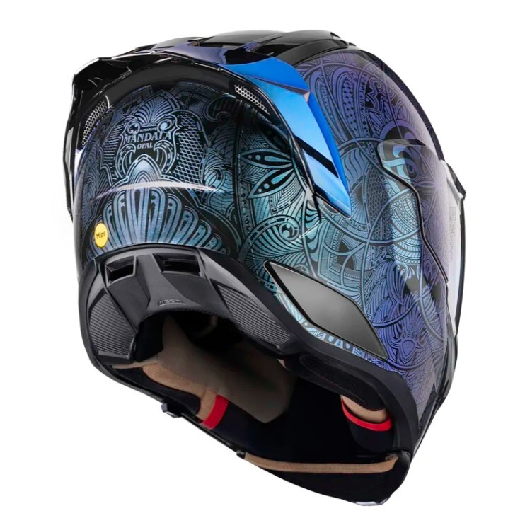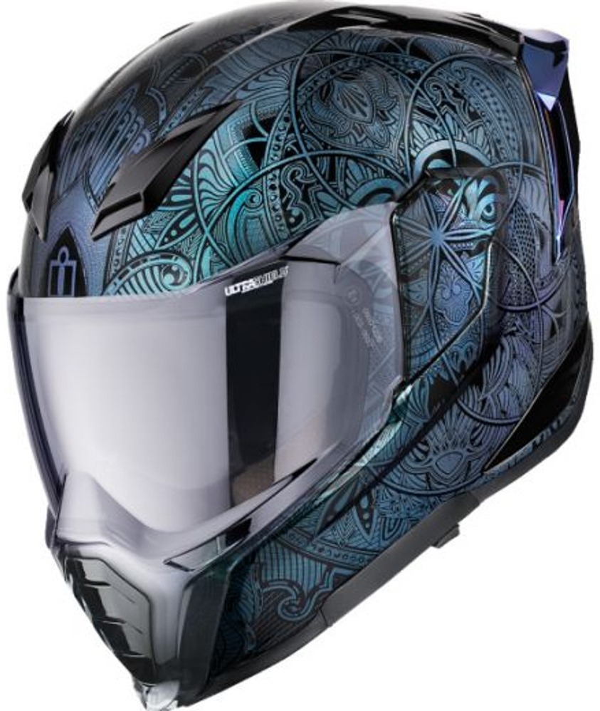 Мотошлем Icon Ultraflite Opal Mandala — это не просто мотошлем интеграл, это произведение искусства, превращающее хаос в ясность благодаря своей гипнотической геометрической графике, вдохновленной мандалой. Этот шлем в синем цвете с графикой мандалы, наложенной на меняющую цвет краску ICON Opal, которая меняет оттенки, словно движущаяся мысль, станет вашим проводником к самопознанию на дороге.