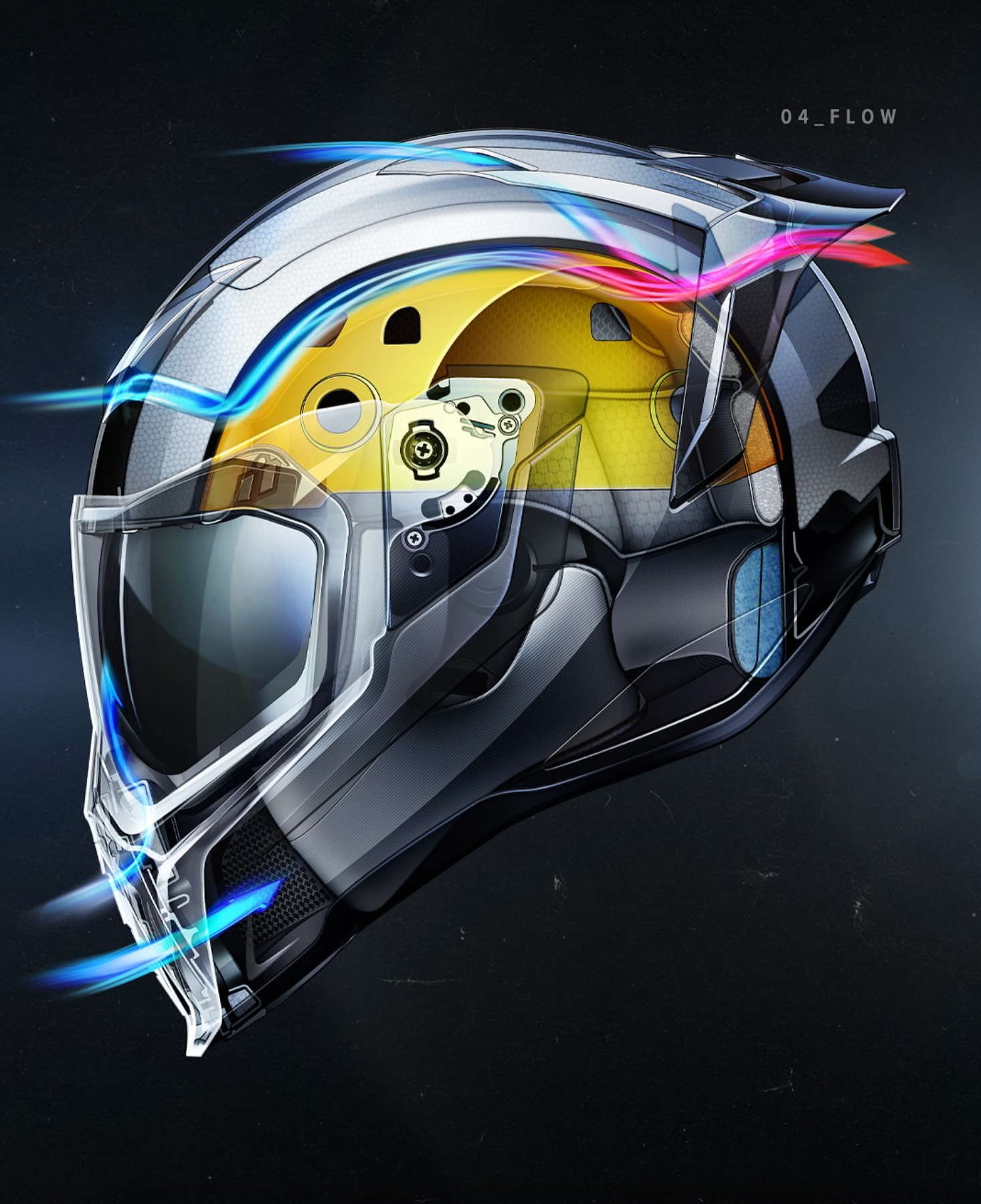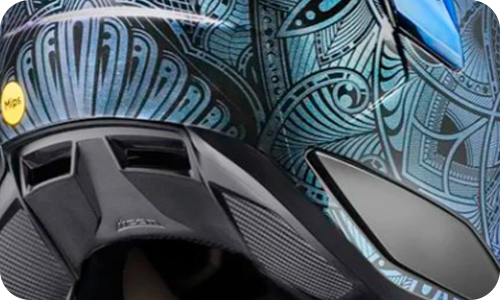 Под светящейся поверхностью скрывается изготовленный вручную корпус из стеклопластика, разработанный для обеспечения легкости и прочности. Шлем оснащен системой безопасности MIPS, которая снижает вращательное движение при ударе, обеспечивая дополнительную защиту мозга. Полностью сертифицирован по стандартам DOT FMVSS 218 (США), ECE R22.06 (Европа) и PSC (Япония), что подтверждает его высочайший уровень безопасности.