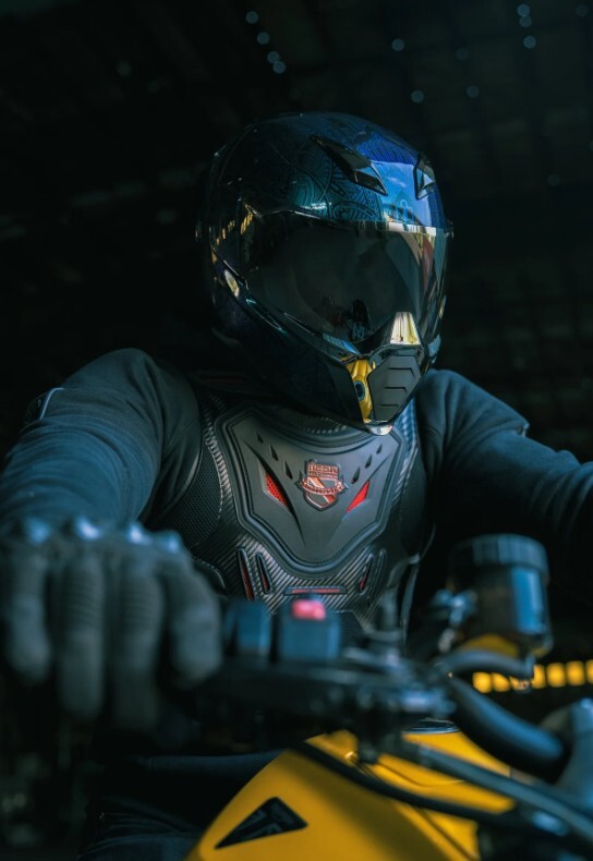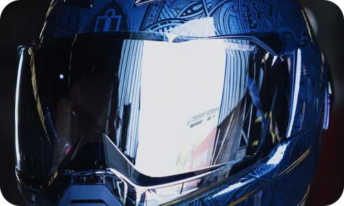 Обзор контролируется быстросъемным шлемом ULTRASHIELD и незапотевающим шлемом Dropshield Ultra, активируемым внешним переключателем для быстрого переключения. В комплекте поставляется неискажающий Fog-Free Pinlock-Ready Clear & Dark Smoke Ultrashield с принудительной блокировкой, а также увеличенный Dark Smoke DropshieldUltra. Съемная шторка на подбородке снижает шум ветра и тряску.