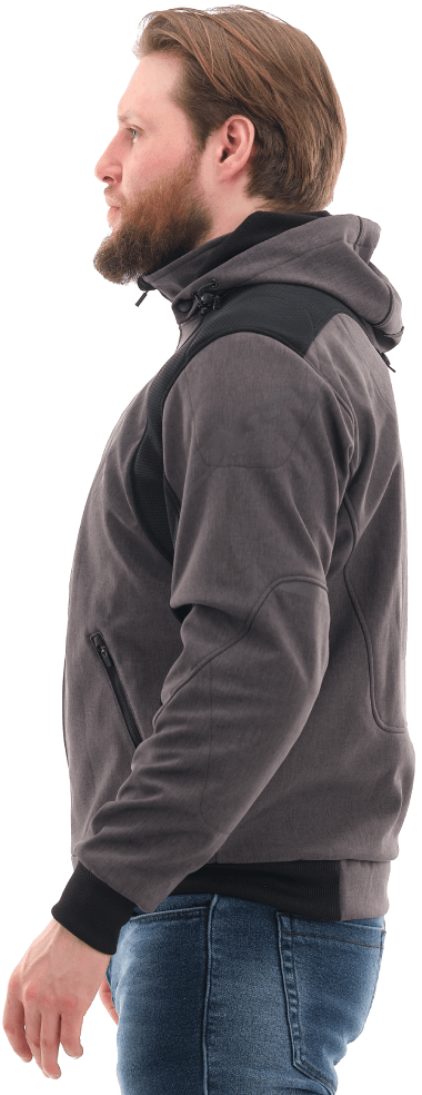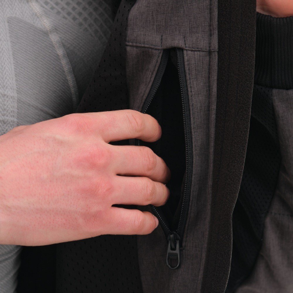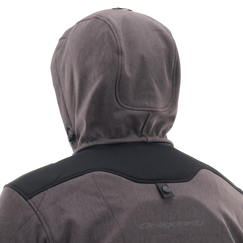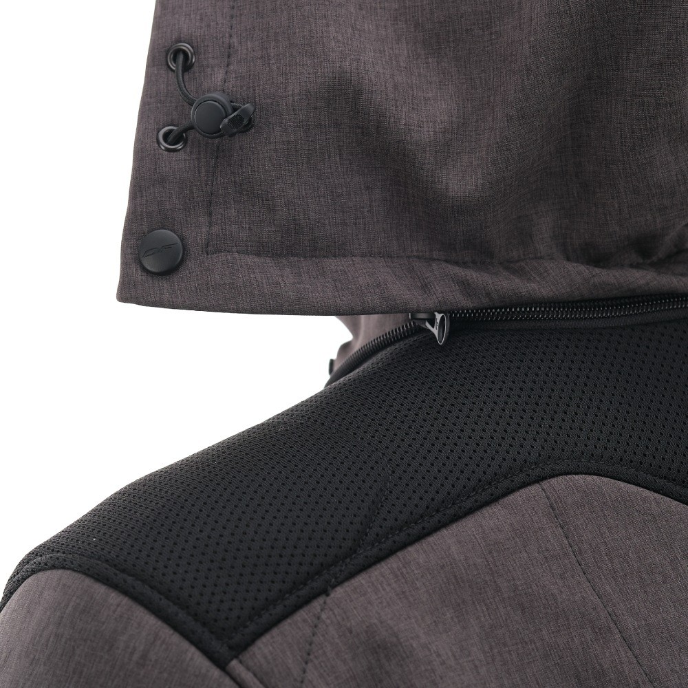 Основа изделия — технологичный Softshell с мембраной 10000/5000, который надежно защищает от ветра и легкого дождя, отводя лишнюю влагу. Вставки из сетки 3D Air-mesh обеспечивают эффективную вентиляцию и смягчают давление лямок рюкзака. Благодаря этому толстовка для мотоциклиста поддерживает комфортный микроклимат в диапазоне от +5 до +25°C. Функционал дополняют съемный регулируемый капюшон, четыре кармана с усиленными молниями и петля для крепления к штанам, исключающая задирание спины.