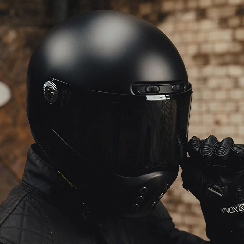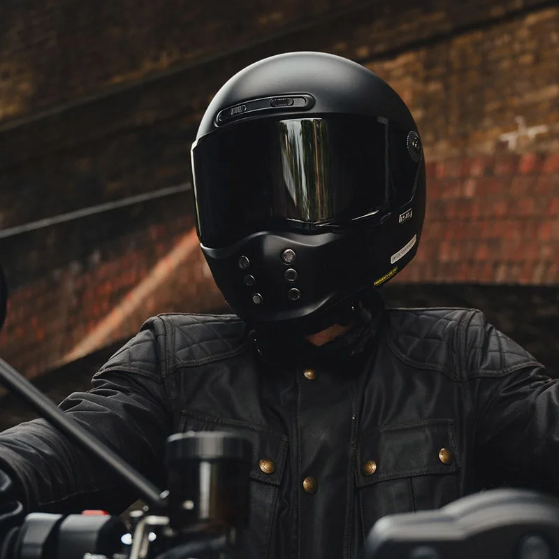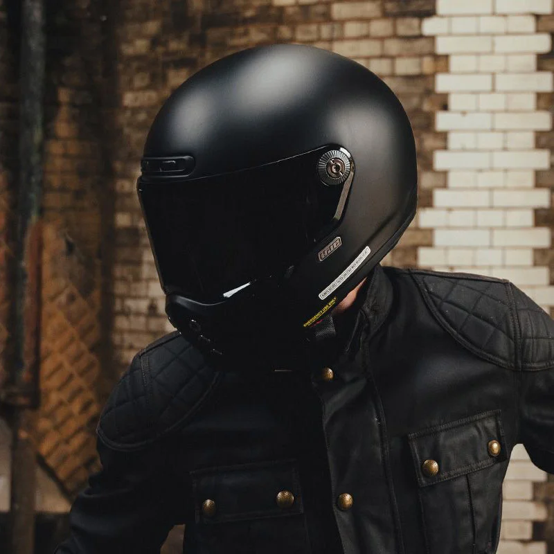 Ищешь крутой мотошлем интеграл, чтобы выглядел олдскульно и стильно, но при этом защищал по полной программе? Присмотрись к HJC V10 N в брутальном матовом черном цвете. Это топовый шлем для мотоциклистов, которые фанатеют от винтажного дизайна, но не готовы жертвовать современными технологиями. Этот мотошлем взрослый сделан из легкого и прочного стекловолокна, поэтому шея не отвалится даже после долгого дальняка. К тому же, этот защитный шлем с запасом проходит самый свежий и жесткий европейский стандарт ECE 22.06 — так что за свою безопасность на дороге можно вообще не переживать.
