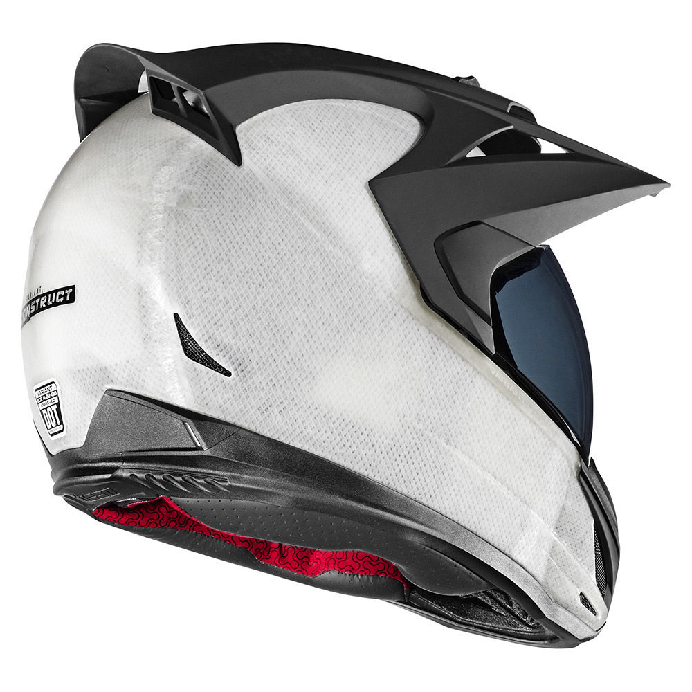 Мотошлем интегрального типа Icon Variant Construct является моделью премиум класса и отличается высокими аэродинамическими и защитными свойствами. Легкая и ударопрочная скорлупа получена в результате ручной сборки с применением современных технологий. Оболочка изготовлена на основе 3 видов композитных материалов — Dyneema, углеродных и стеклянных волокон.