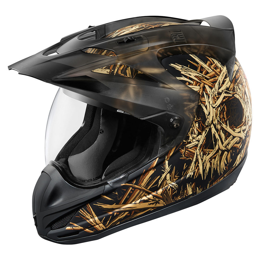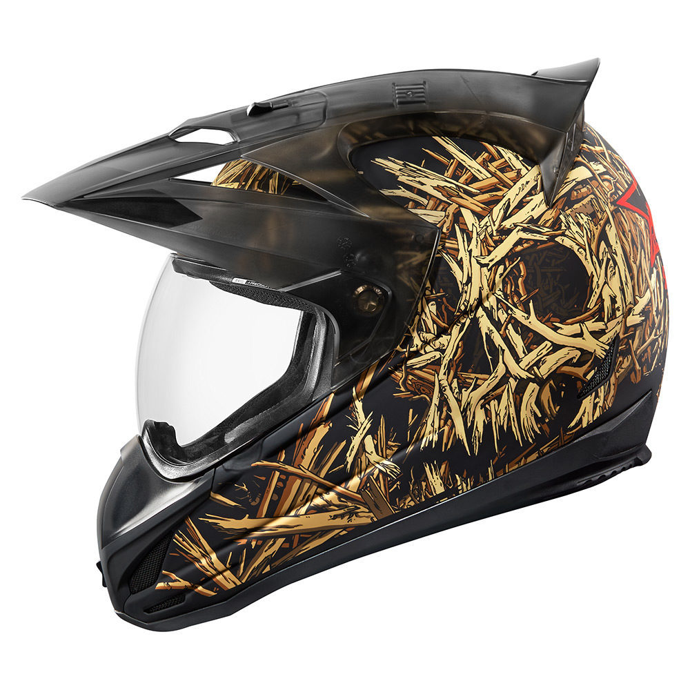 На первый взгляд, может показаться, что это кроссовый или эндуро шлем, но это не так. Данная модель шлема создана специально для уличных райдеров. Шлем сочетает в себе всё лучшее от спортивных интегралов и хард-эндуро шлемов. Главное отличие модели Variant от классического интегрального шлема - наличие козырька, который защищает от дождя и грязи в плохую погоду и от солнечных лучей в хорошую погоду. Все шлемы линейки Variant имеют высокий уровень безопасности, комфорта, отличную аэродинамику, широкий обзор и вентиляцию. Т.е. этот шлем полностью адаптирован под городские условия. Мотошлем Icon Variant - самый высокотехнологичный шлем линейки Icon.