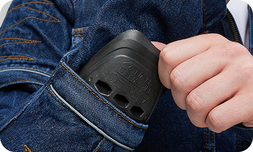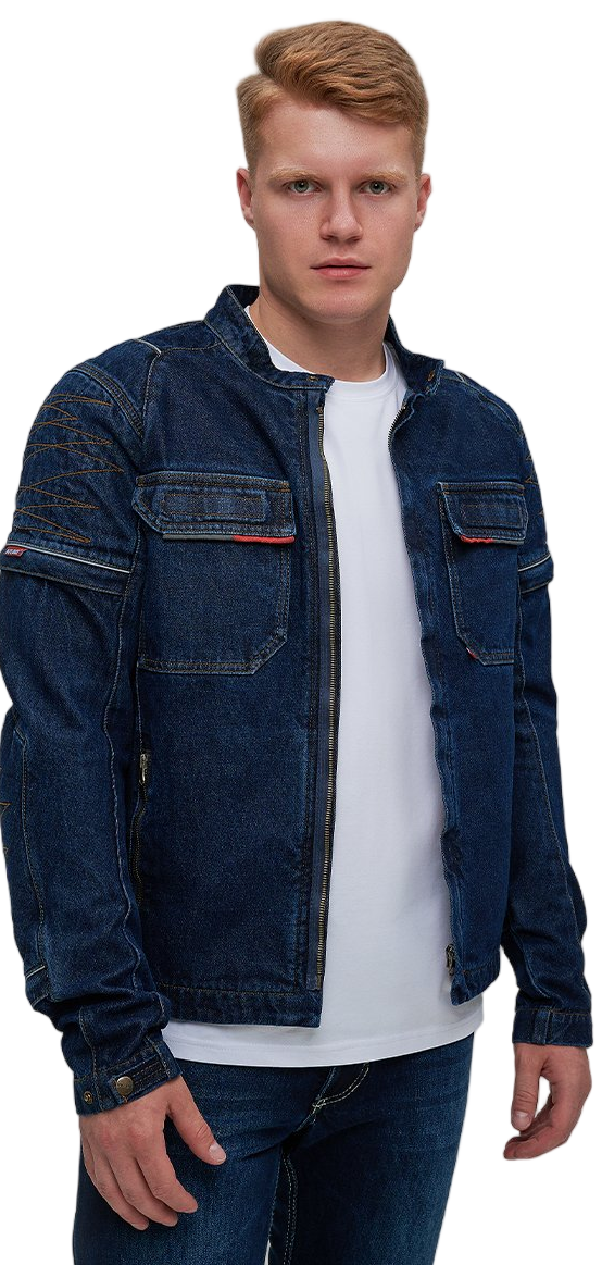 В основе — оригинальный плотный деним 14oz, который придает куртке не только привлекательный внешний вид, но и обеспечивает высокую износостойкость. Для усиления критически важных зон (спина, внешние части рук) применены арамидные вставки (2-й слой), известные своей исключительной прочностью и устойчивостью к истиранию. Третий слой — мягкий приятный к телу подклад, перекрывающий арамид, обеспечивает дополнительный комфорт.