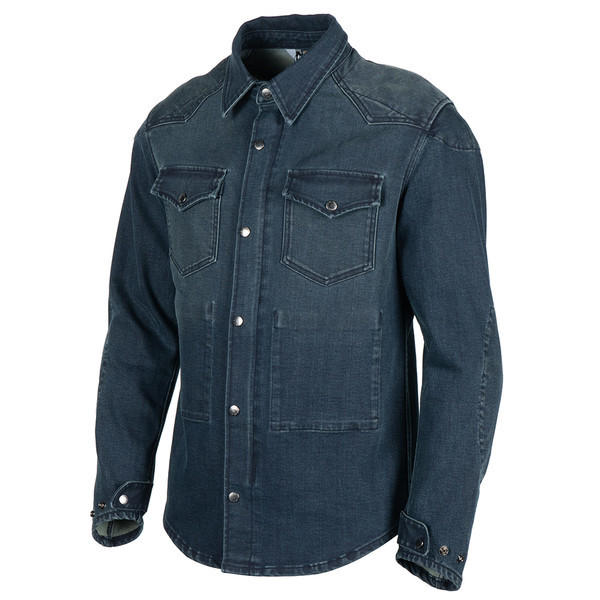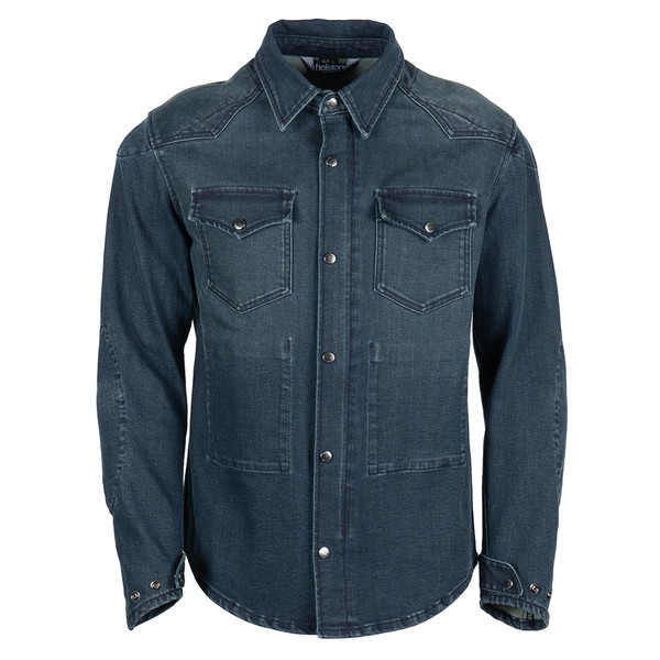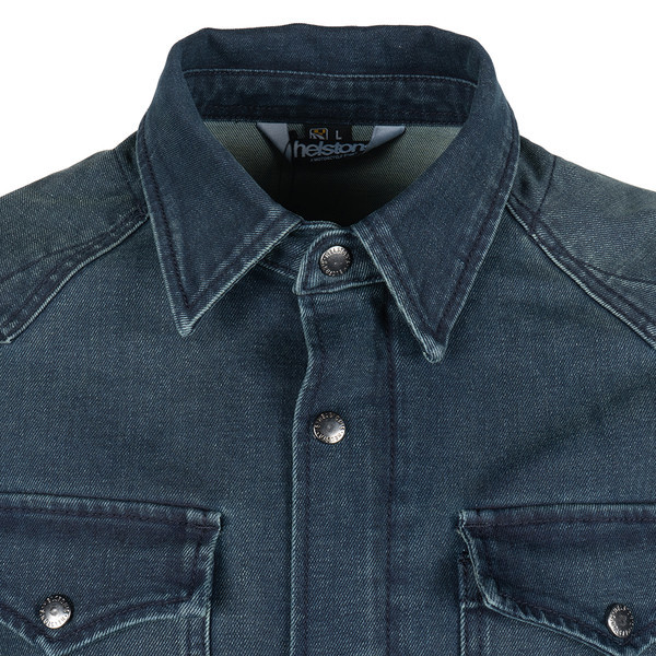 Легкая мужская текстильная мотокуртка Helstons Vince Toile Coton Armalith, сшитая в виде верхней джинсовой рубашки из самого крепкого хлопкового полотна Armalith с арамидными волокнами. Застежка на молнию закрыта ветрозащитной планкой на кнопках, имитирующей планку обычной рубашки. У модели 2 внешних и 2 внутренних кармана. Крой классический, слегка приталенный, у ткани есть влагозащитная пропитка.