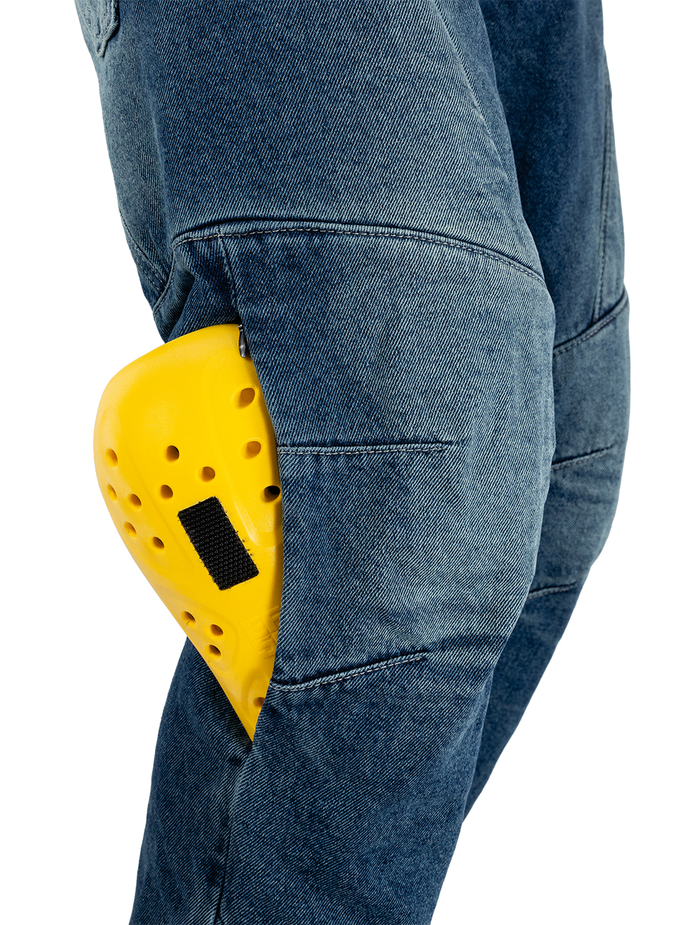 В комплектацию входят сертифицированные защитные вставки для коленей уровня XY 816 Level 2, соответствующие европейскому стандарту EN1621-2 (CE). Для защиты бедер предусмотрены амортизирующие пенополиуретановые вставки. Рекомендовано к использованию совместно с сертифицированными защитными вставками для бедер XY 701 Level 2 (EN1621-2 CE) для достижения максимального уровня безопасности. Система регулировки положения коленных протекторов по высоте (до 10 см), а также возможность подшива штанин позволяют адаптировать данные мотоциклетные штаны под антропометрию райдеров ростом от 166 до 184 см.